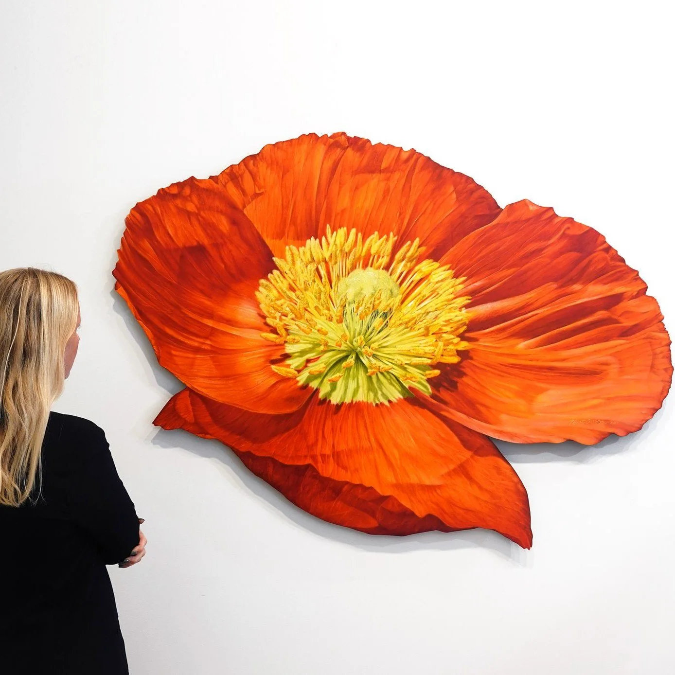 They are unique in that while the edges of the pieces are cut to the shape of the flower or leaf, the support framework on the reverse of the board ensures that when hung, the work sits clear of the wall surface, creating an intriguing silhouette of shadows which plays on the realism of the subject.